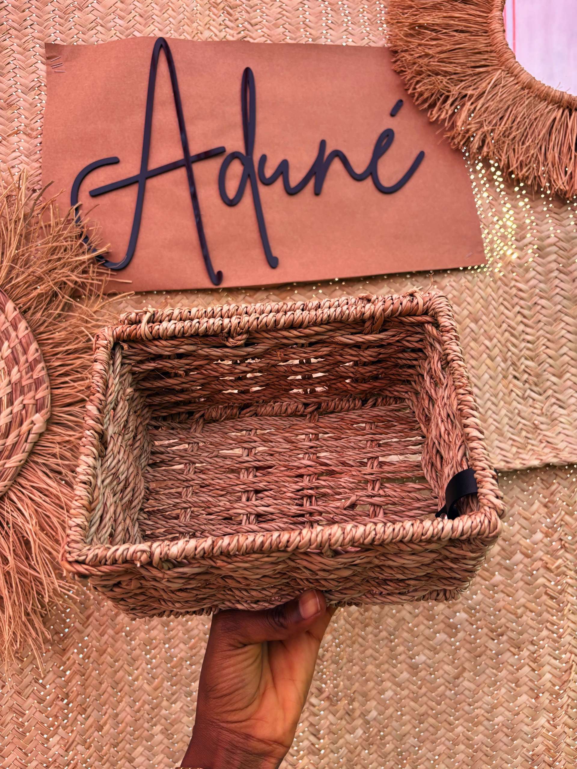 The Haven Box is designed to sit beautifully in your home while serving its purpose. Wrapped in natural raffia and finished with an Aduné leather tag, it holds tissues neatly or becomes a refined storage box for everyday essentials.
